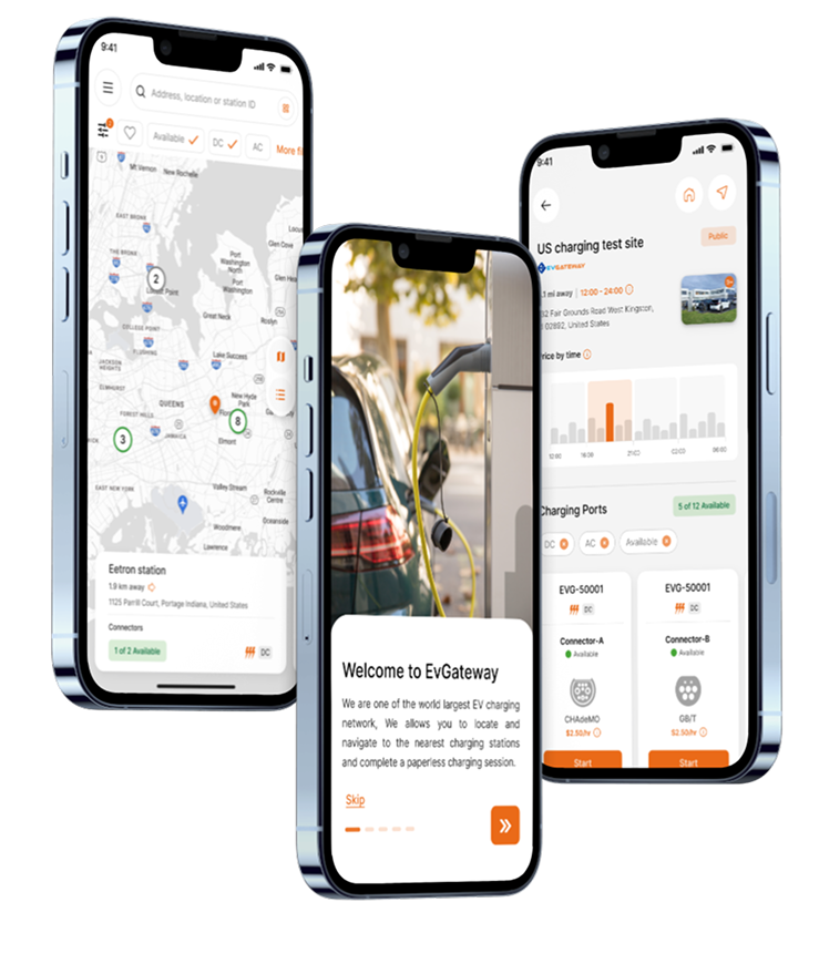 Our mobile app is designed to make your EV journey effortless. Easily locate the nearest charging station, get step-by-step directions, and conveniently pay for your charging session — all in one seamless experience. With EvGateway, staying charged and on the road has never been easier.