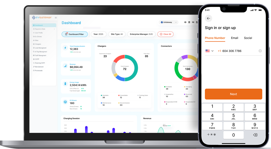 EvGateway’s EVSE Hardware-Agnostic Charging Network can be customized to provide turn-key EV charging services for customers worldwide.
