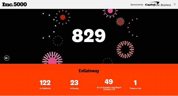 Irvine, CA – Inc. announced that EvGateway has achieved a remarkable position on the renowned Inc. 5000 list for 2023. This annual compilation celebrates the exceptional growth of private enterprises across America, shedding light on their independent and entrepreneurial accomplishments. EvGateway, an industry front-runner in the realm of EV Charging management networks, has been ranked at an impressive 829th place in terms of overall growth, and an outstanding 23rd position within the Energy sector.